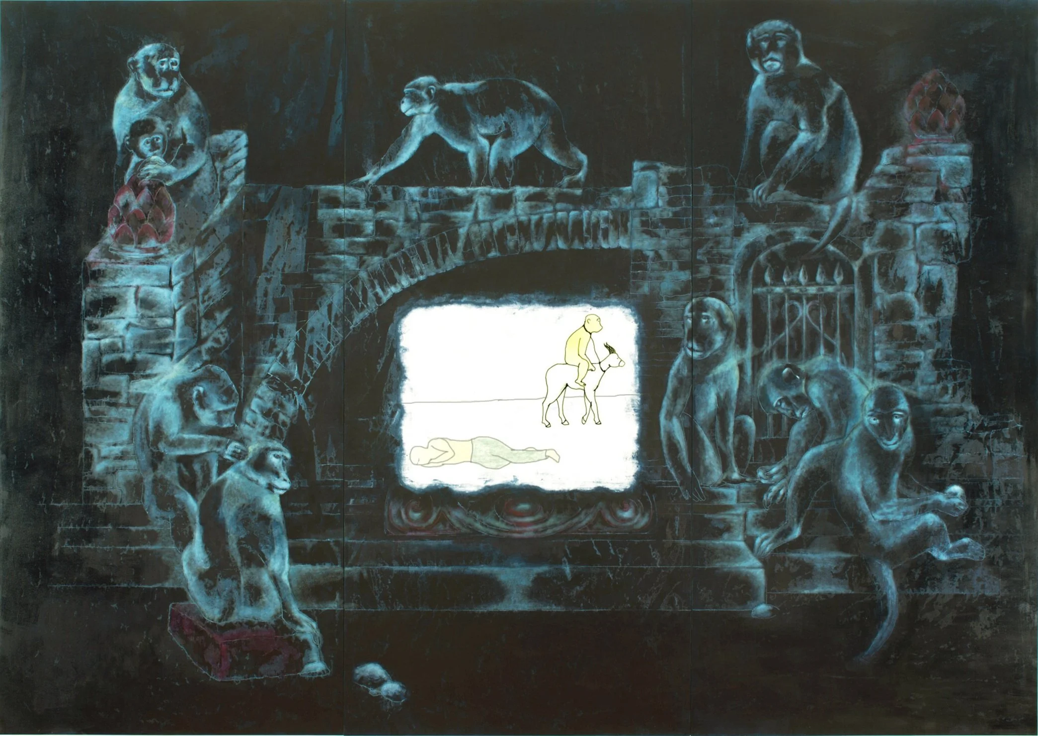 2008 I oil on gesso and wood I 120" x 85", with video animation projection 7 min and 20 sec
